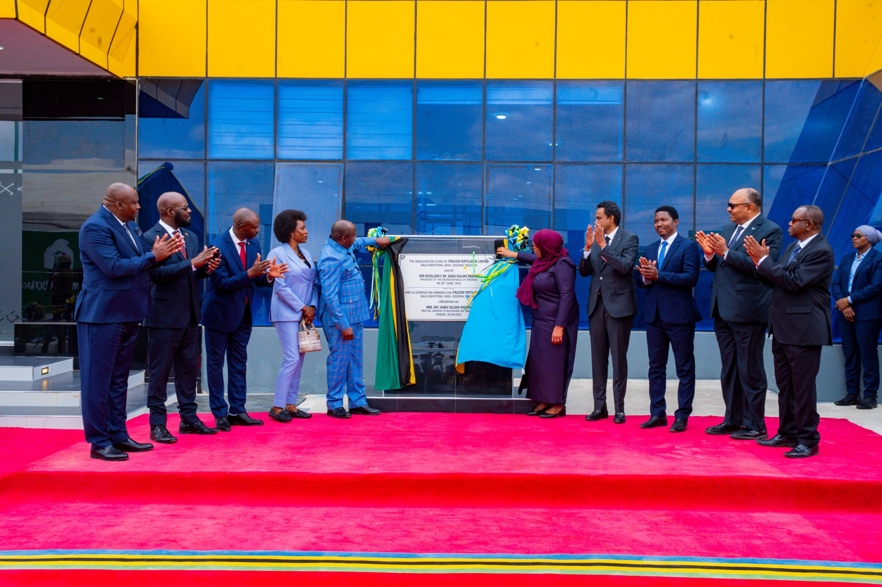Her Excellency President Samia Suluhu Hassan, President of the United Republic of Tanzania, officiates the laying of the foundation stone for the ITRACOM Fertilizer Plant — a key milestone in advancing industrial development and agricultural transformation in Tanzania.