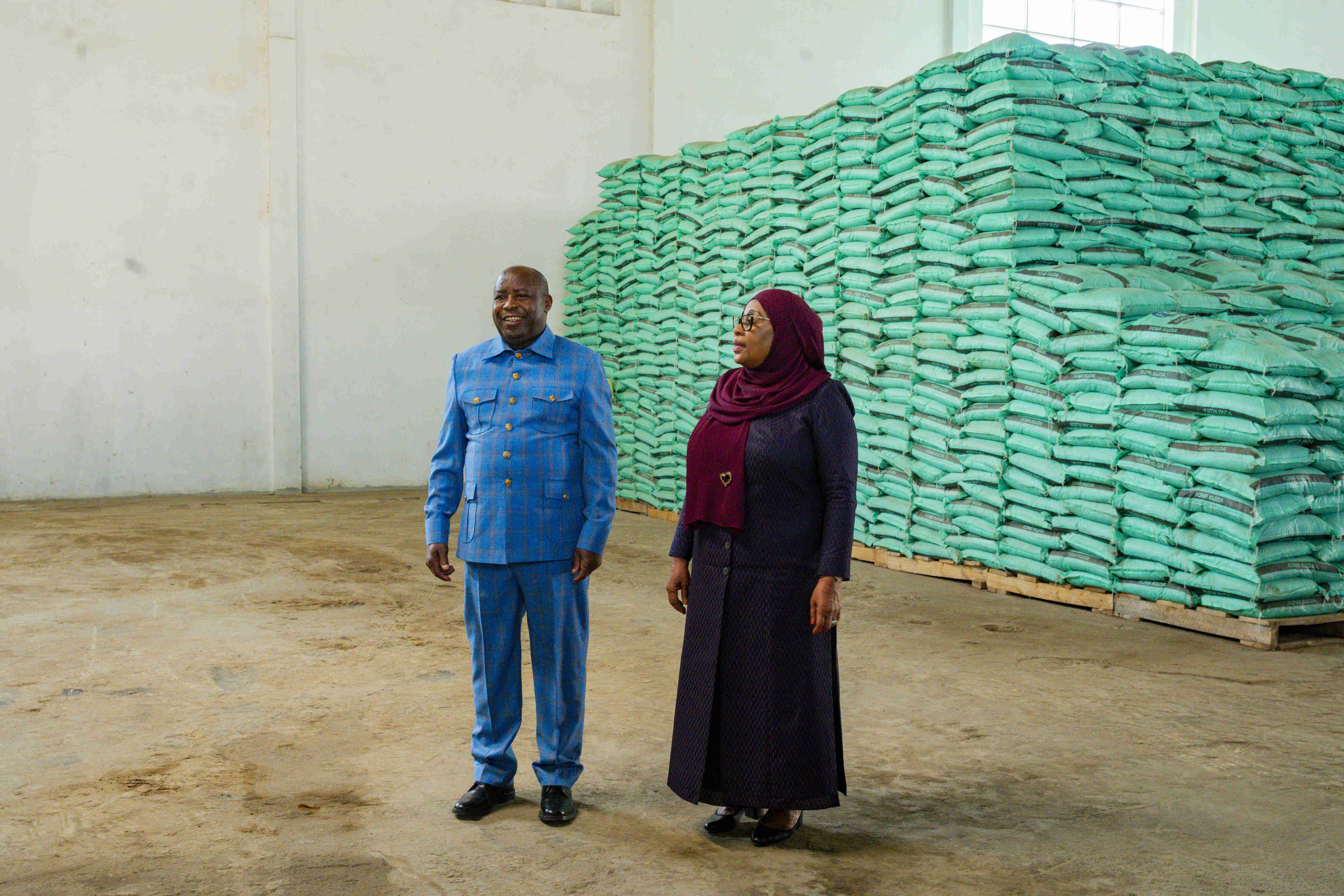 As part of the official opening of the ITRACOM Fertilizer Plant, President Dr. Samia Suluhu Hassan and President Major General Évariste Ndayishimiye were shown a large consignment of fertilizer, ready for regional distribution — marking a major milestone in agricultural support and self-sufficiency for East Africa.